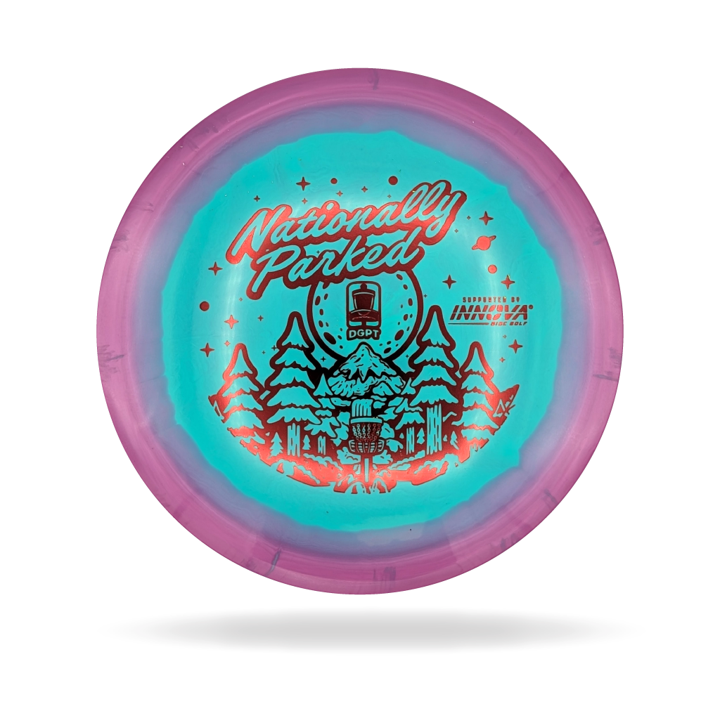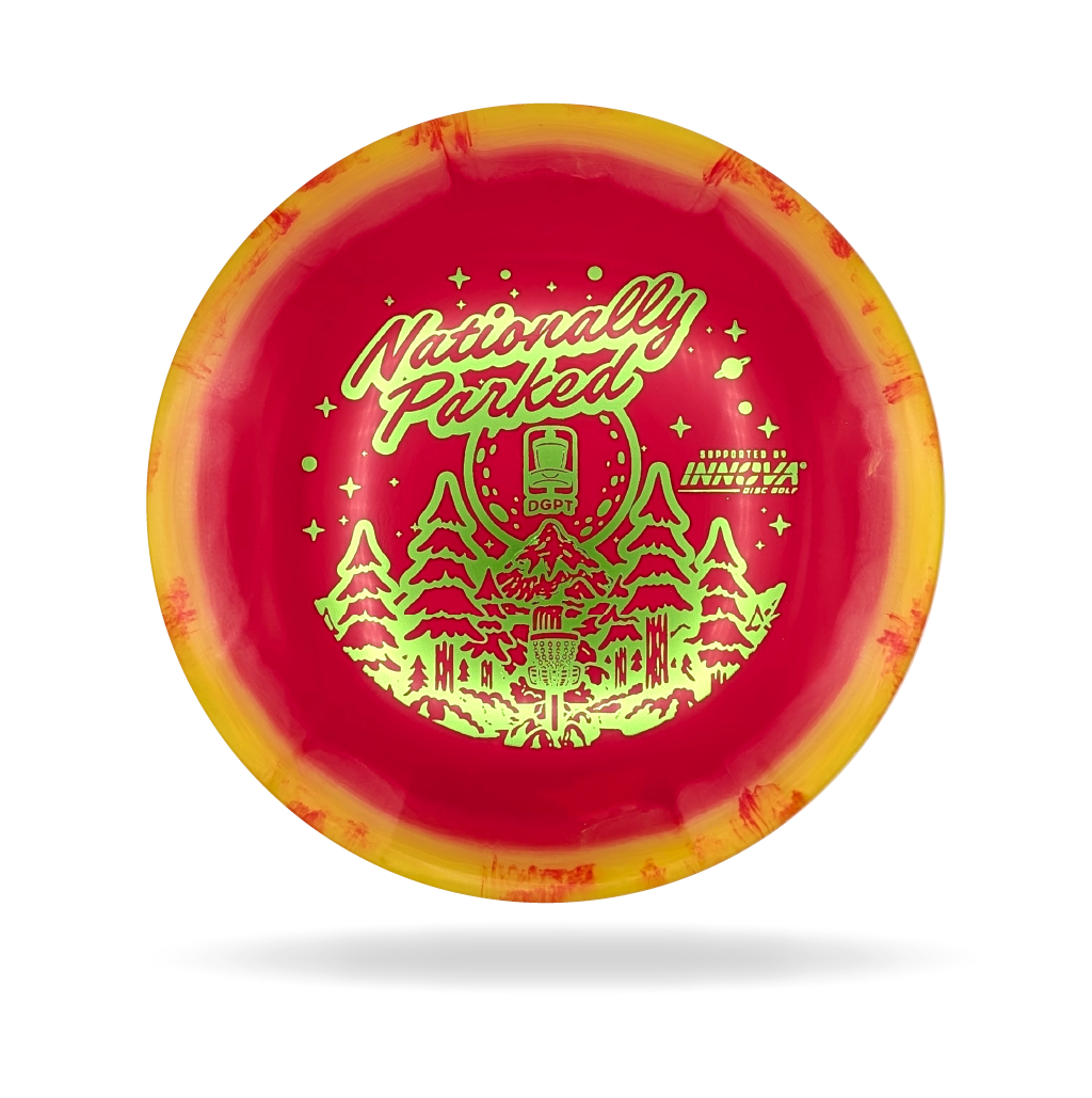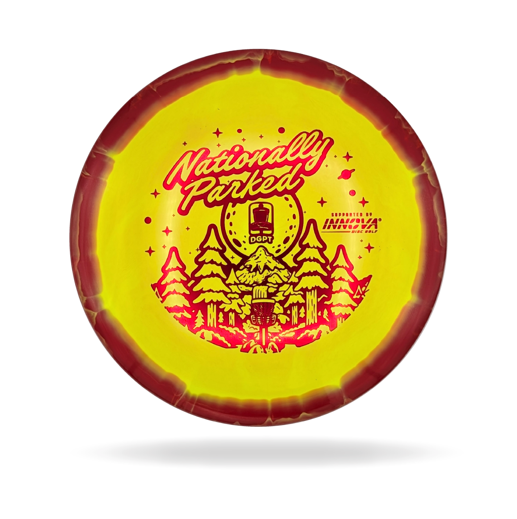Experience the majesty of America’s great outdoors with the 2025 Nationally Parked DGPT design. This year’s edition features a stunning waterfall cascading from rugged mountain peaks, capturing the serene power and beauty of our national parks. Every detail—from the mist rising off the falls to the towering mountain ridges—evokes the feeling of being immersed in nature’s grandeur. Perfect for collectors and disc golf enthusiasts alike, this design celebrates adventure, exploration, and the landscapes that inspire the game.