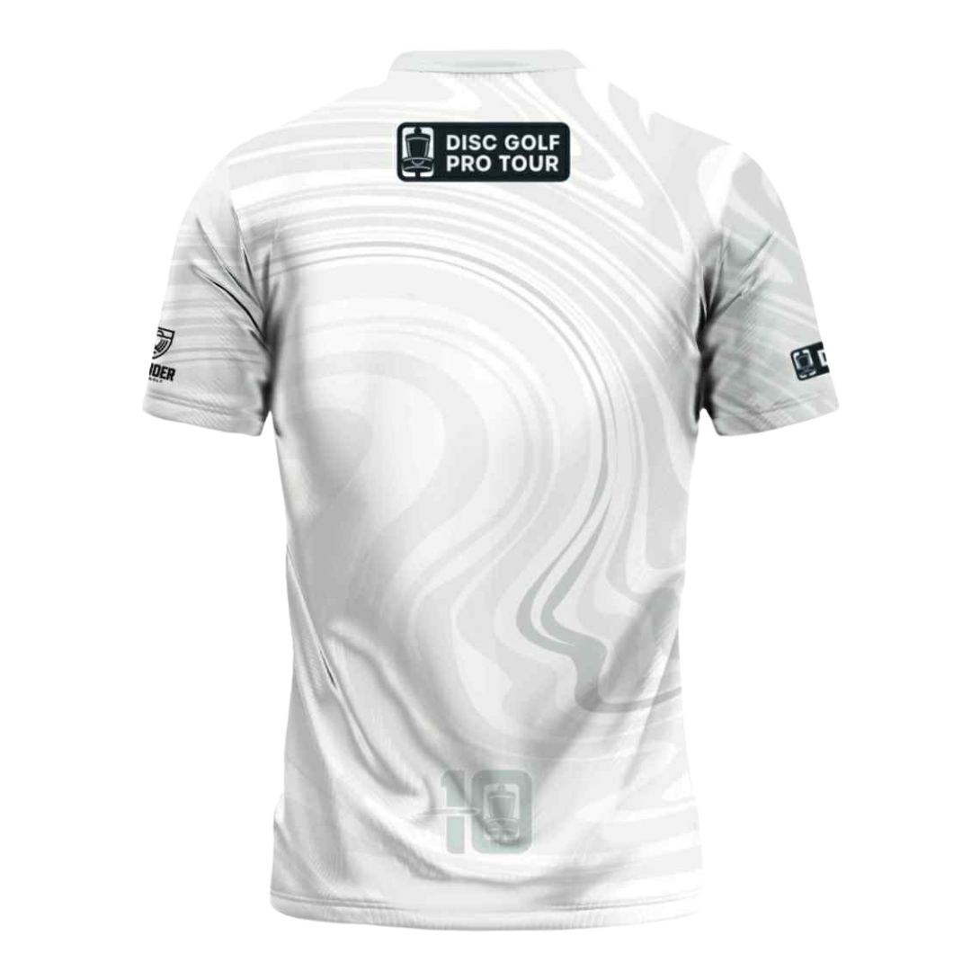 Introducing our newest collaboration with Wander Disc Golf — a clean, coastal-inspired jersey built for comfort and style on the course. This white jersey features a subtle wave pattern throughout, giving a nod to movement, flow, and staying cool under pressure.