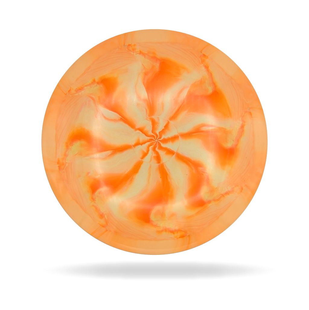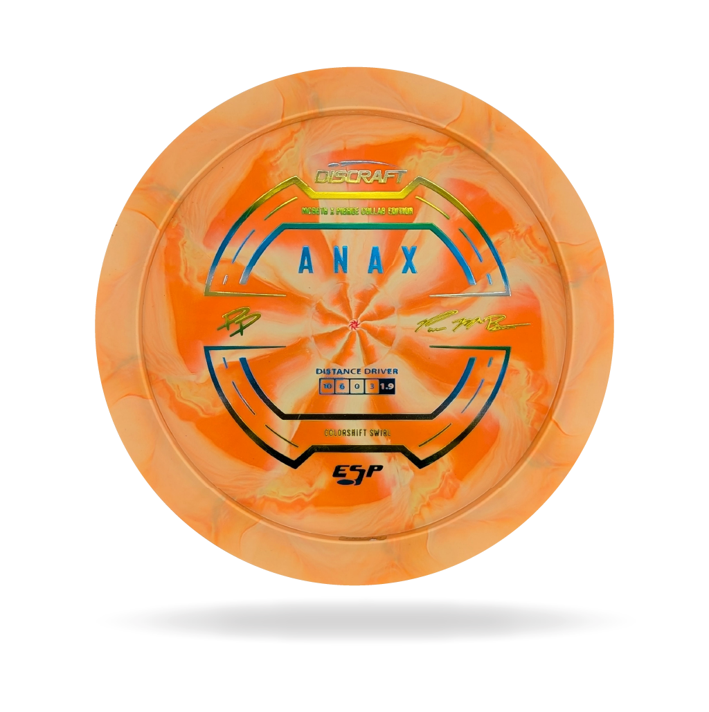 The Anax is a driver with elite carry and a trustworthy fade—now available in a special Paul McBeth & Paige Pierce GMC collab that nods to the fan-favorite “1060 Anax.” The stiff, slightly domed profile adds glide and a crisp, connected release. Complimening the original release, you’ll find a bottom stamp that lets the swirls and color patterns take center stage.