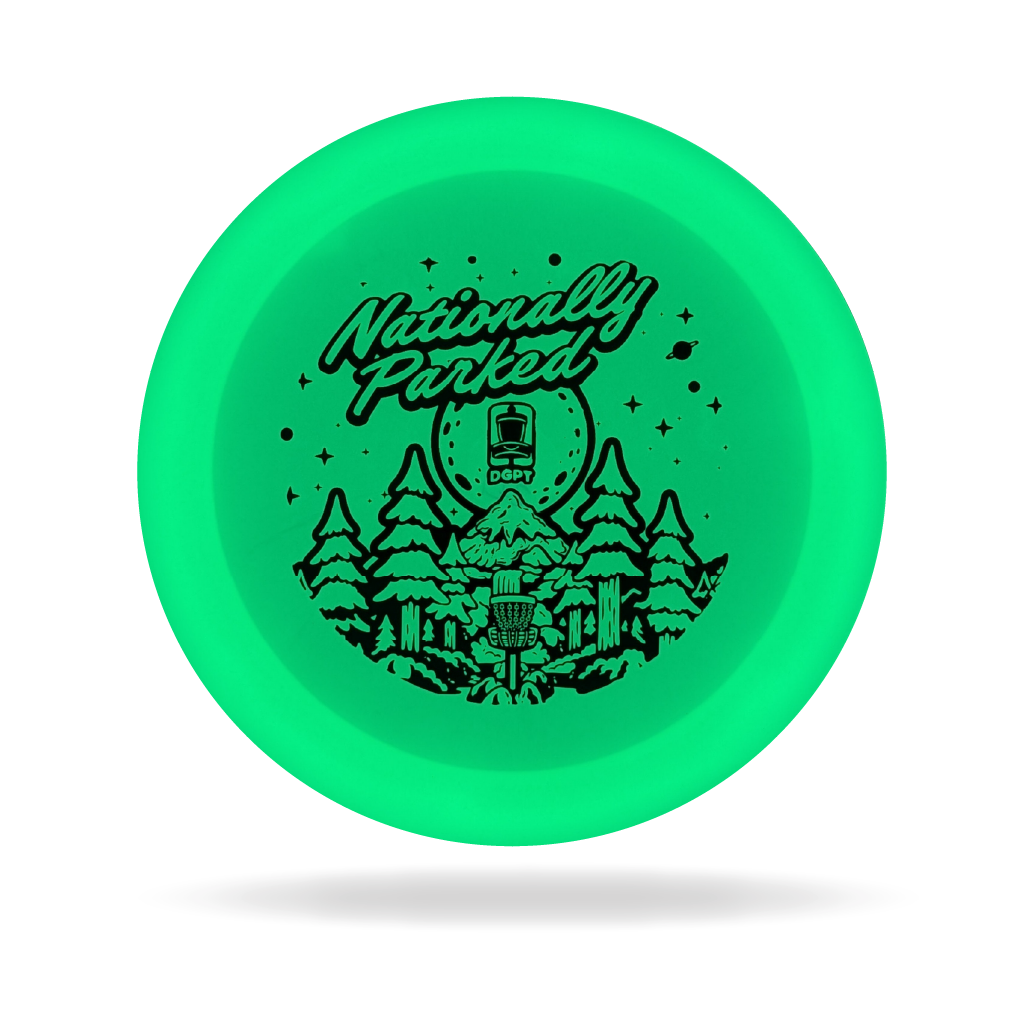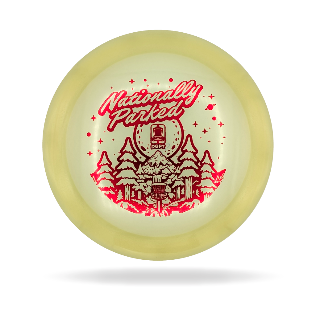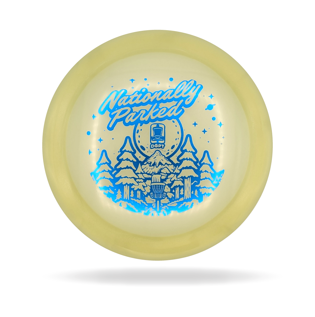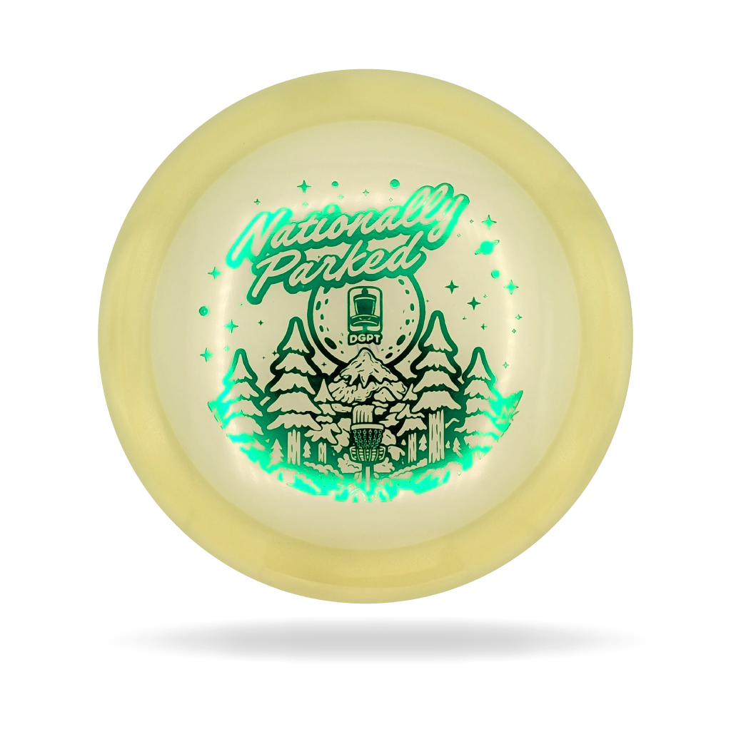 Experience the majesty of America’s great outdoors with the 2025 Nationally Parked DGPT design. This year’s edition features a stunning waterfall cascading from rugged mountain peaks, capturing the serene power and beauty of our national parks. Every detail—from the mist rising off the falls to the towering mountain ridges—evokes the feeling of being immersed in nature’s grandeur. Perfect for collectors and disc golf enthusiasts alike, this design celebrates adventure, exploration, and the landscapes that inspire the game.