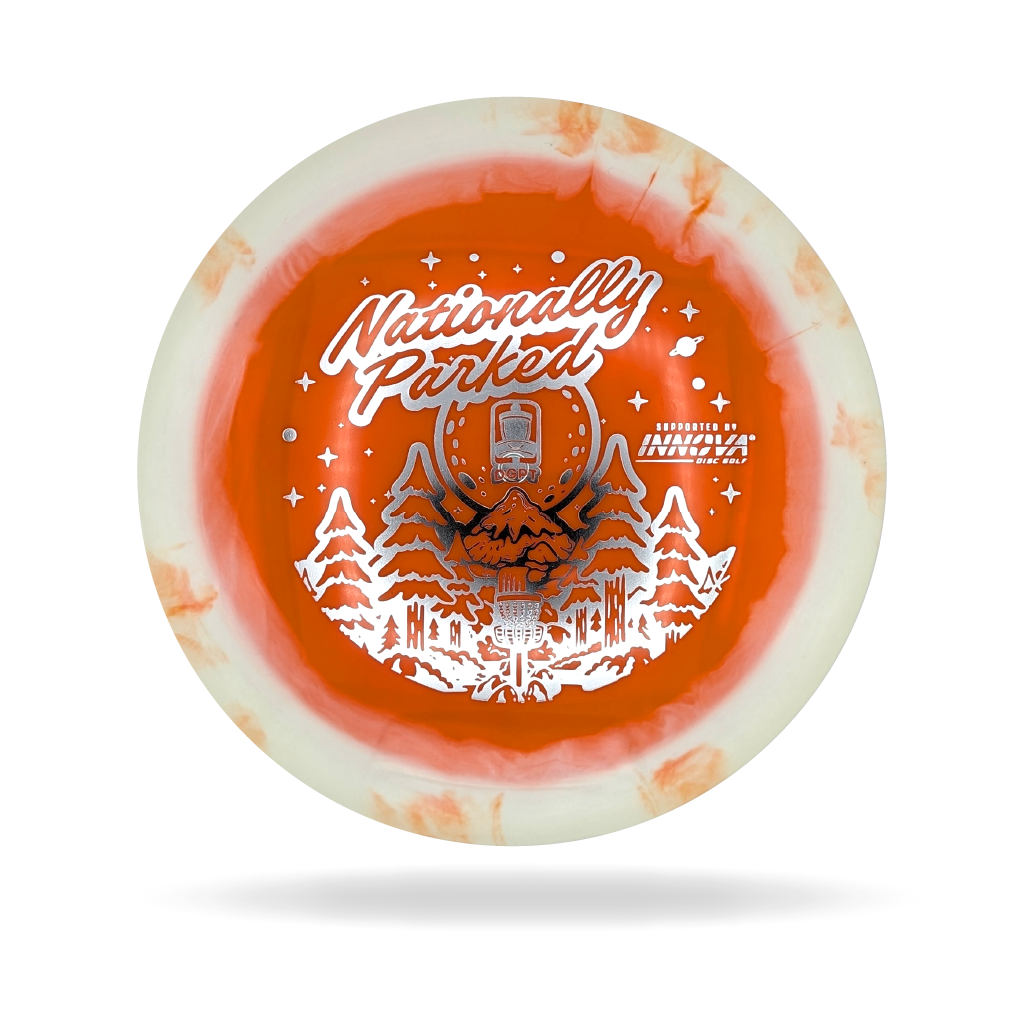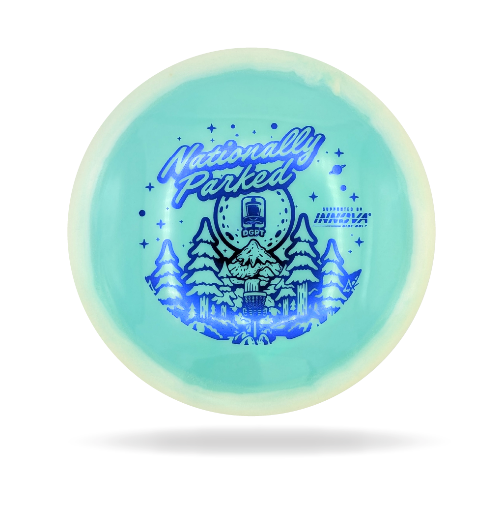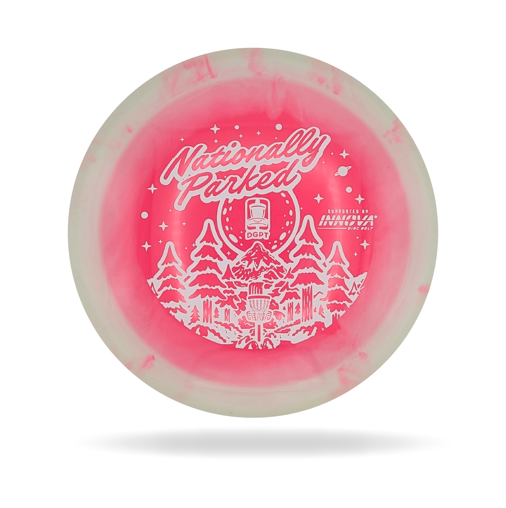 Experience the majesty of America’s great outdoors with the 2025 Nationally Parked DGPT design. This year’s edition features a stunning waterfall cascading from rugged mountain peaks, capturing the serene power and beauty of our national parks. Every detail—from the mist rising off the falls to the towering mountain ridges—evokes the feeling of being immersed in nature’s grandeur. Perfect for collectors and disc golf enthusiasts alike, this design celebrates adventure, exploration, and the landscapes that inspire the game.